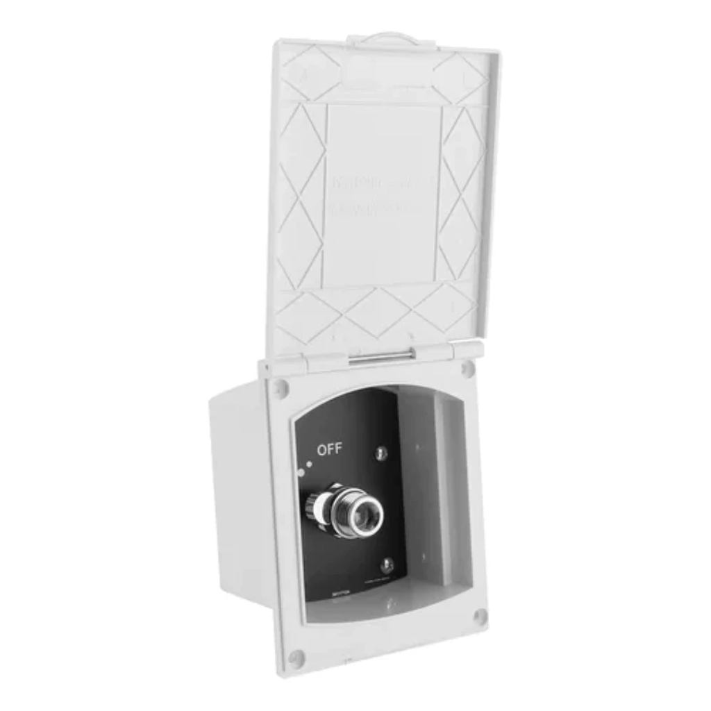 Interface de entrada e saída da caixa de chuveiro externa de RV de 1/2 polegada branca para caravana RV, barco, motorhome sem mangueira/cabeça de chuveiro