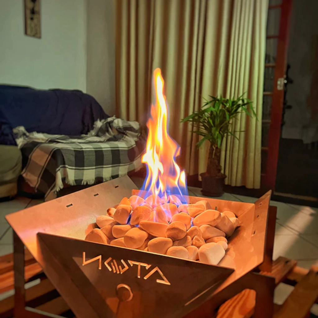 O mais surpreendente é que este produto além de churrasqueira pode ser um fogareiro a lenha, se transformar em lareira ecológica e também um fogareiro a gás!